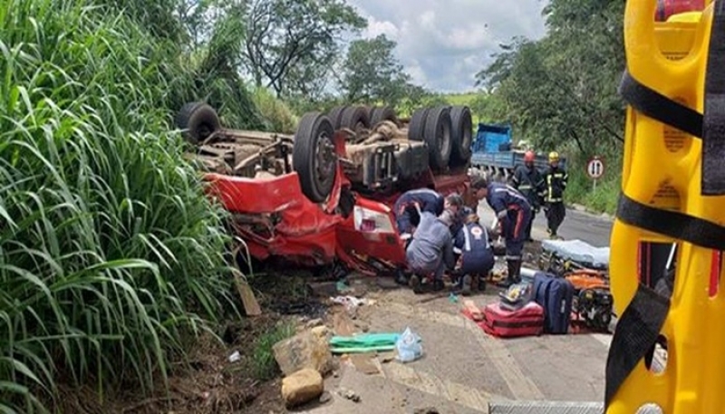 Um caminhão capotou nesta sexta-feira (8) na BR-494, próximo ao trevo de Perdigão. Segundo o Corpo de Bombeiros, o motorista Paulo César de Oliveira, 26 anos, ficou preso às ferragens.