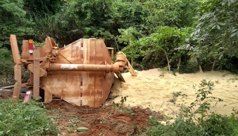 A polícia ambiental de Arcos compareceu ao local para verificar se houve algum dano ambiental e orientou para que a carga fosse retirada do leito do rio assim que possível.