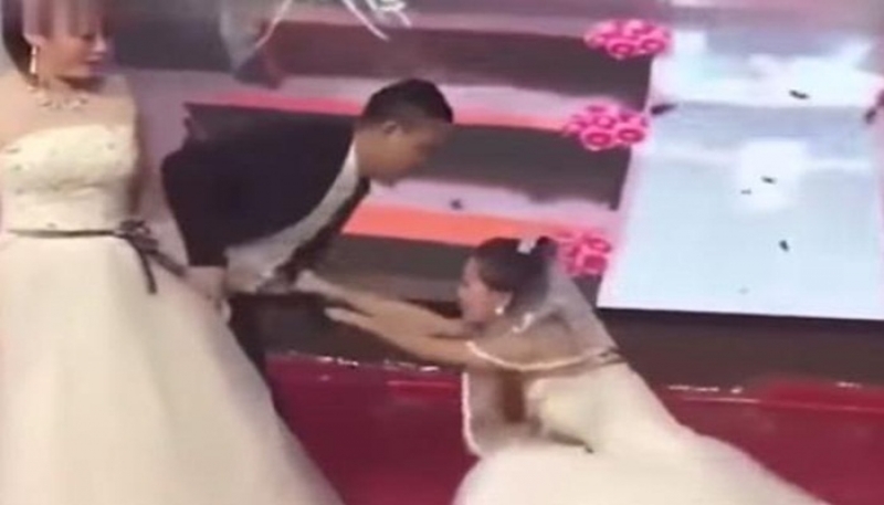 Uma mulher invadiu o casamento do ex para convencê-lo a não se casar. A cena constragedora ocorreu na China. Detalhe: ela foi vestida de novia para o local.