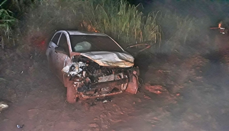 Então, o condutor do HB20 virou bruscamente e em alta velocidade em uma estrada vicinal paralela à BR-262, mas ele perdeu o controle da direção e bateu o veículo no barranco.