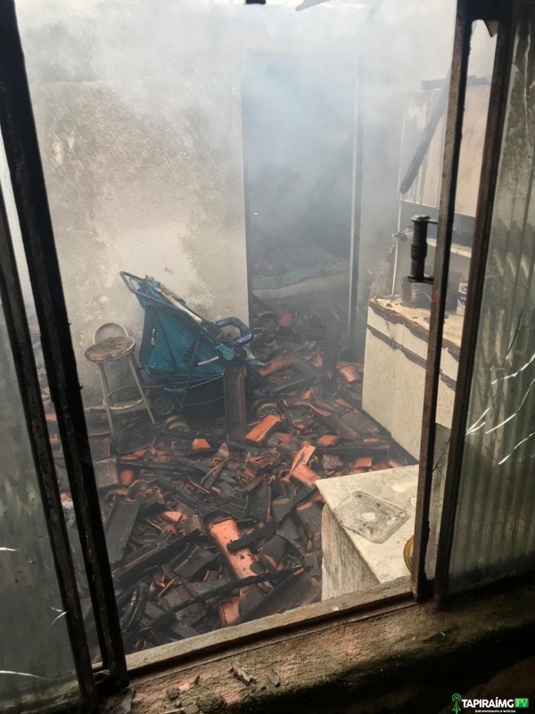 Uma casa pegou fogo na manhã desta quinta-feira (09), no bairro Maria Teresa Gular, em Córrego Danta. Havia uma mulher e uma criança na residência.