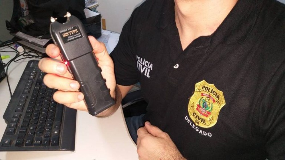 A equipe da Polícia Civil seguiu até o local e encontrou o cachorro. De acordo com o delegado Renato Magalhães, foram realizadas buscas no domicílio e os policiais encontraram a arma de eletrochoque.
