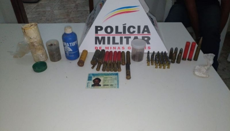 Ainda segundo a PM, na casa do condutor, foram localizados uma munição intacta calibre 762, duas munições intactas calibre 45, três munições intactas calibre 38, duas munições intactas calibre 36 e 27 munições intactas calibre 22, além de uma porção de maconha, um papelote de cocaína, pólvora e material para recarga de cartuchos.