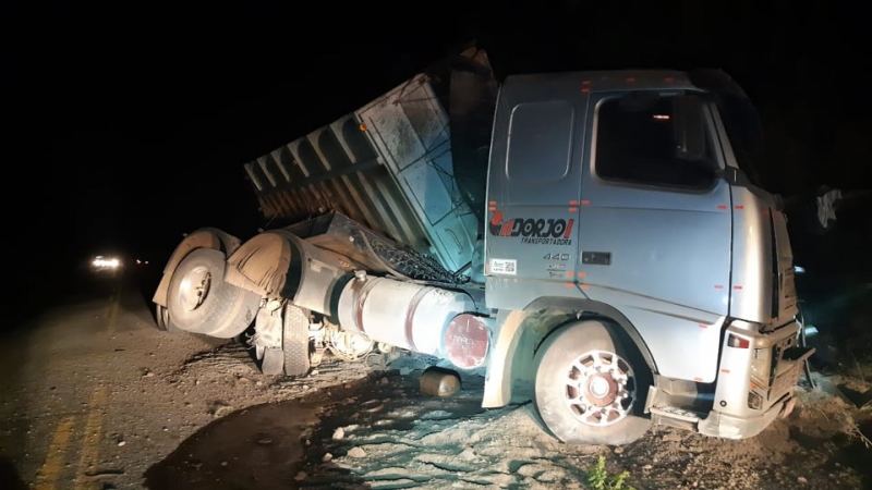 Segundo informações da Polícia Rodoviária Federal (PRF), o motorista disse que perdeu o controle da direção, saiu da pista, bateu em um barranco e tombou.