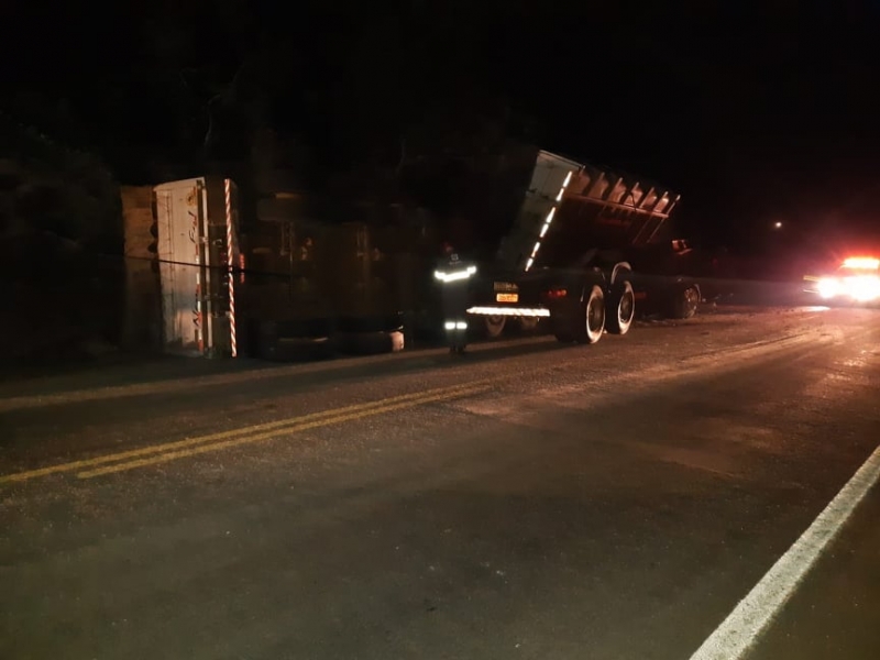 Ainda de acordo com a PRF, arte da carga de calcário ficou espalhada pela pista e o trânsito funcionou no sistema pare e siga até por volta das 6h.