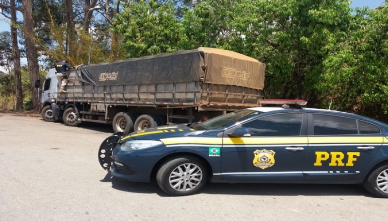 De acordo com a PRF, o motorista, de 42 anos, apresentou uma nota fiscal da carga de milho em grãos com indícios de falsificação.