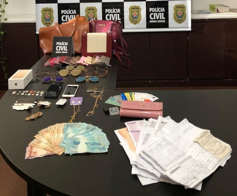 Na casa de Júlia foram apreendidos cartões de crédito, diversos chips de aparelhos celulares, dois telefones, cerca de R$ 2500,00 em dinheiro, vários óculos, bijuterias e documentos que ligam à investigada aos crimes praticados.