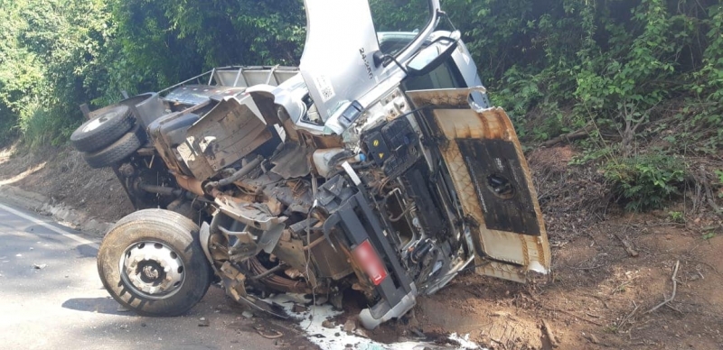 Houve derramamento da carga de leite e o trânsito ficou parcialmente interditado até a retirada dos veículos.
