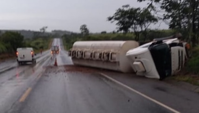 Um caminhão-taque de transporte de combustíveis tombou no fim da tarde desta sexta-feira (03), na BR-262, na altura do Km 722, próximo a Araxá.