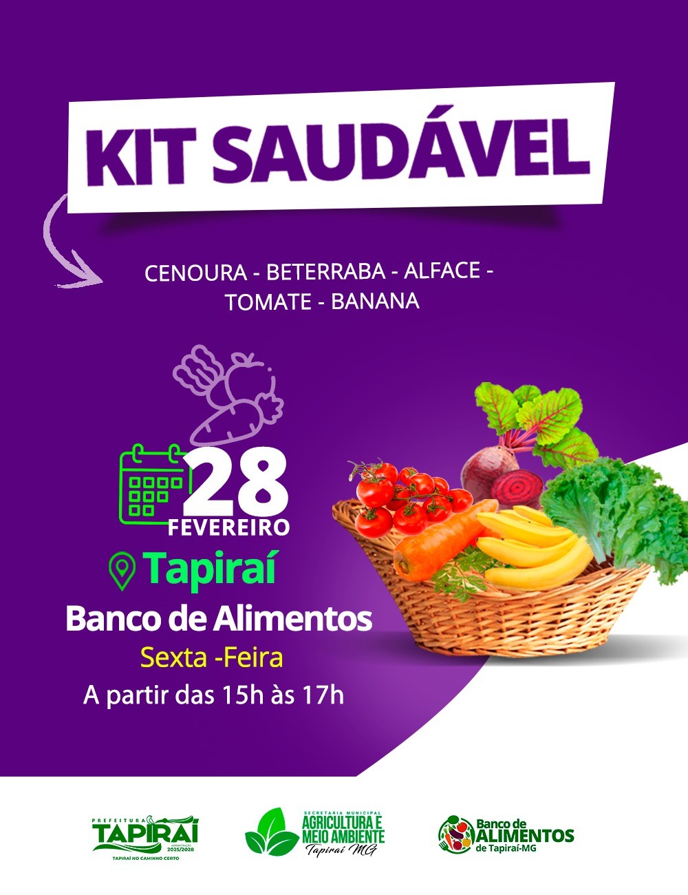 Prefeitura de Tapiraí distribui kit de verduras nesta sexta-feira (28/02)