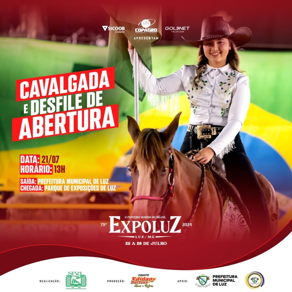 Tradicional Cavalgada e desfile de abertura da ExpoLuz acontece no dia (21/07); confira a programação