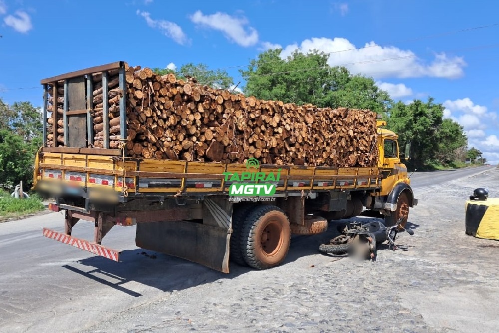 Homem fica ferido após acidente entre caminhão e motocicleta na MG-439, em Arcos