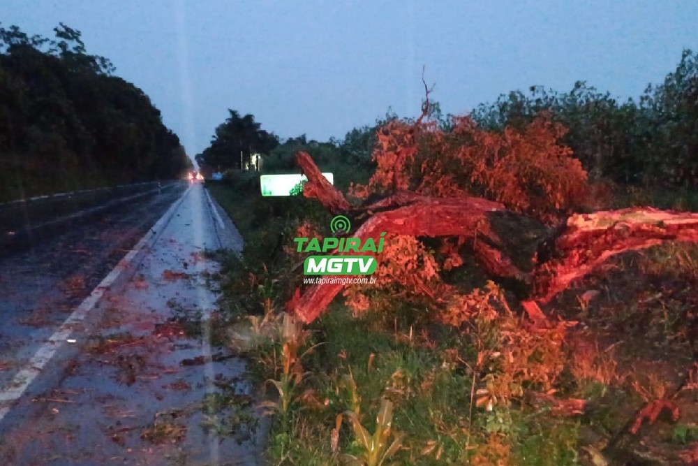 Árvore de grande porte cai e interdita parcialmente trecho da BR-354, em Formiga