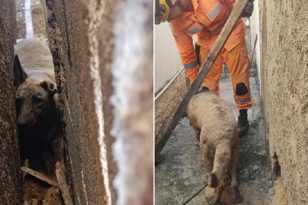 Cachorrinha fica presa entre muro e parede de casa em Arcos