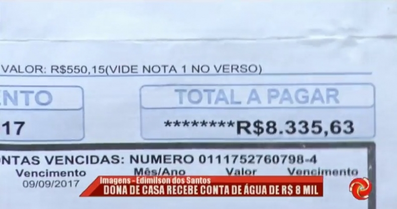 Dona de casa recebe conta de agua no valor de R$ 8 mil