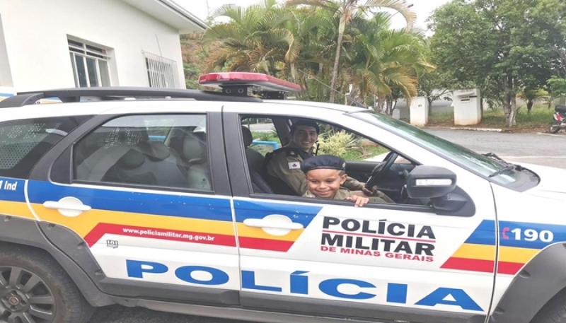 Menino de 5 anos realiza sonho de conhecer quartel da PM