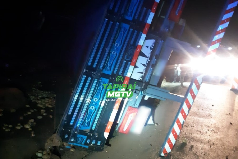 Acidente envolvendo carreta deixa trânsito interditado na BR-262, em Campos Altos