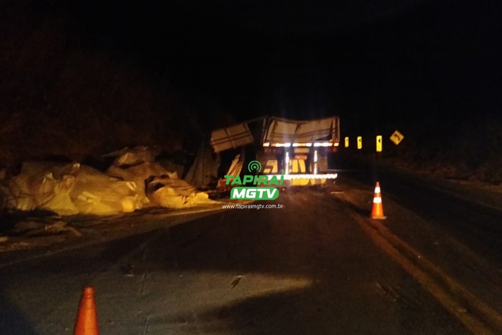 Motorista fica ferido após acidente com carreta carregada de açúcar na BR-262, em Luz