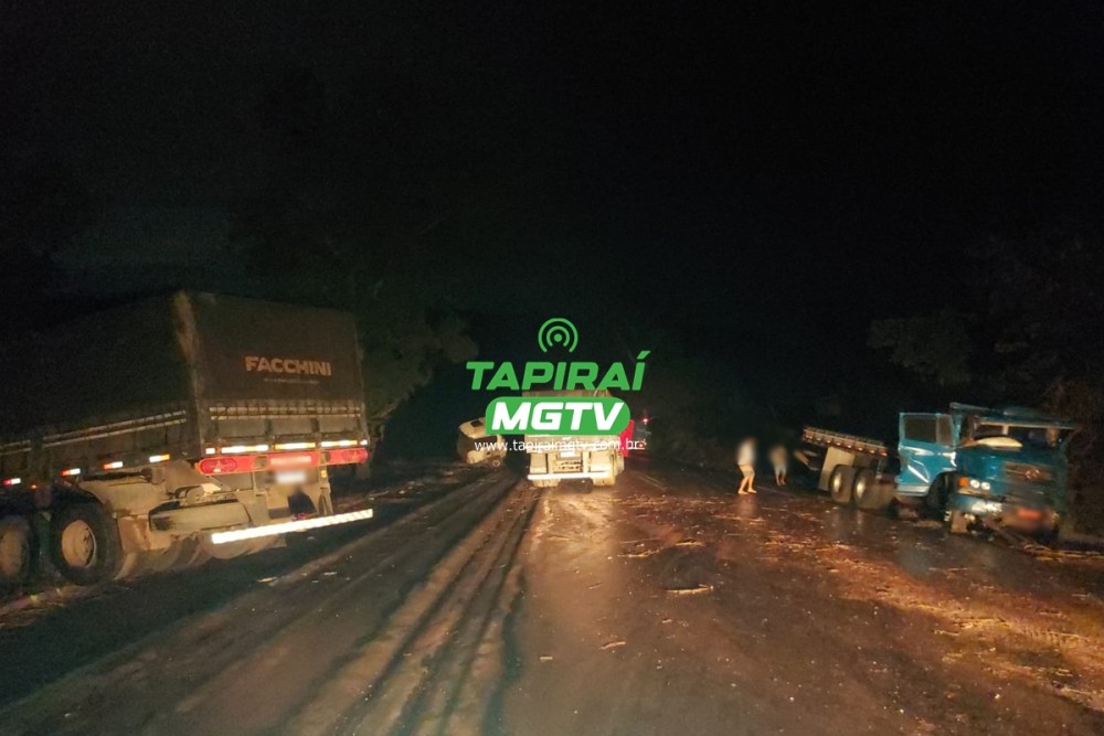 Aquaplanagem causa acidente entre três carretas e um caminhão na BR-354