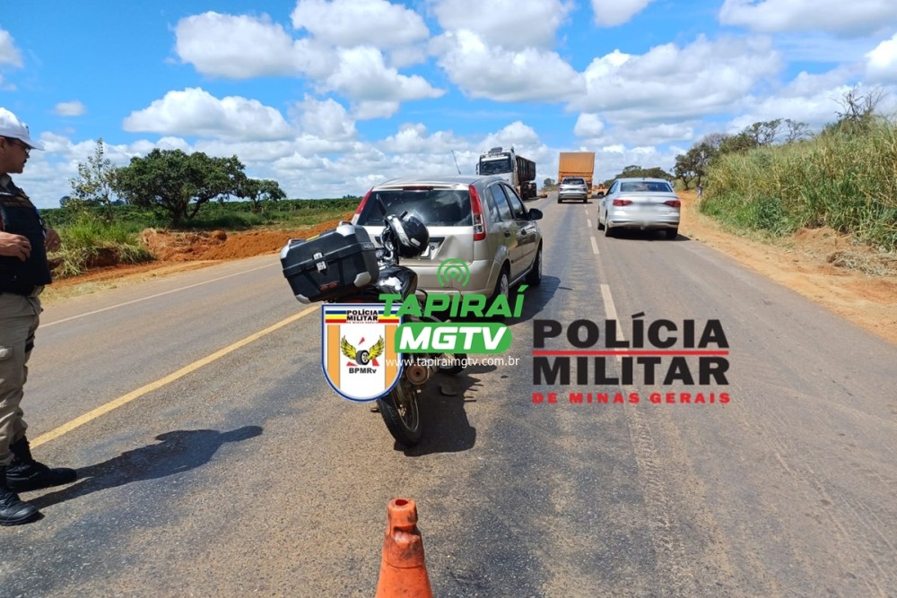 Homem fica ferido após acidente entre motocicleta e carro na BR-354