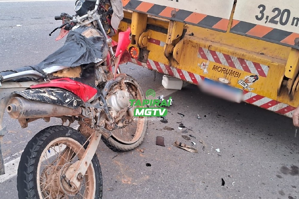 Homem morre e criança fica gravemente ferida após acidente envolvendo motocicleta e carreta na BR-262