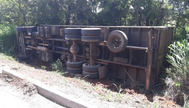 Caminhão tomba na BR-262 entre Ibiá e Araxá