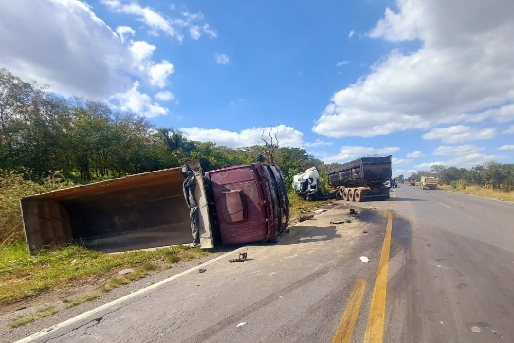 Caminhão carregado com ração fica destruído após pegar fogo na MG-170, entre Arcos e Lagoa da Prata