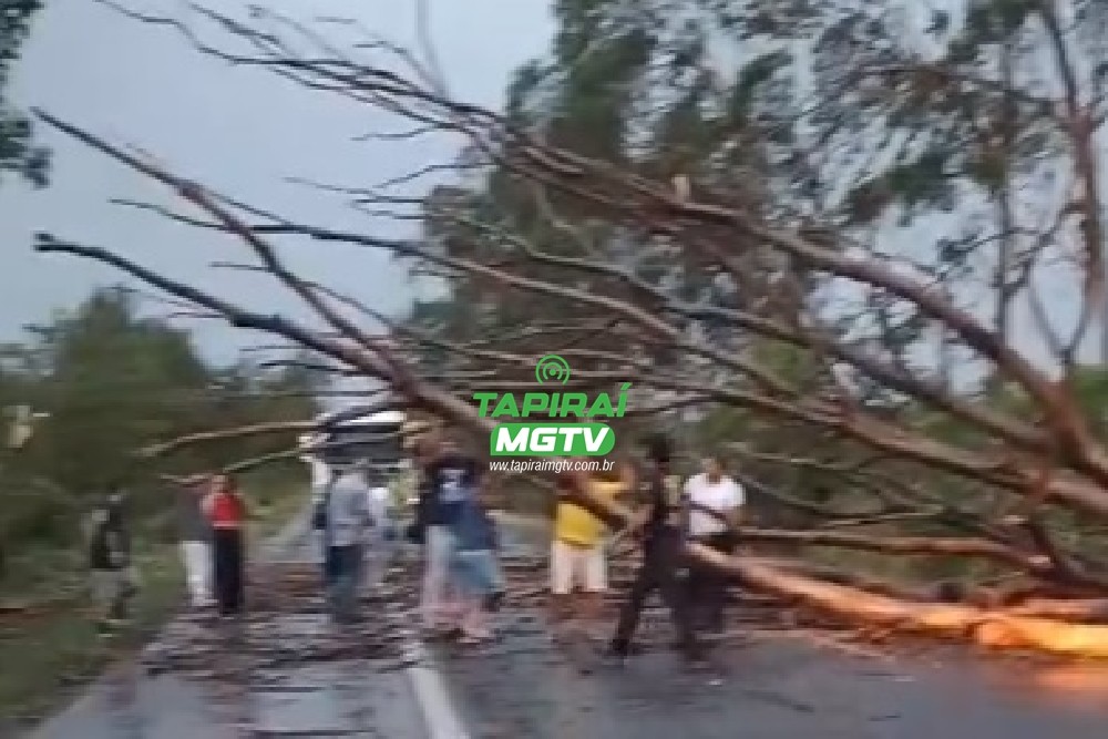 Vídeo: Chuva provoca queda de árvore e interdita trecho da BR-262 entre Luz e Bom Despacho