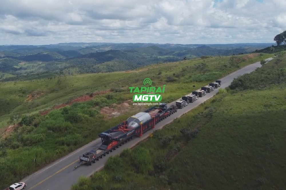 Vídeo aéreo mostra carreta com carga de 491 toneladas passando pelas rodovias BR-354 e BR-262, em Córrego Danta