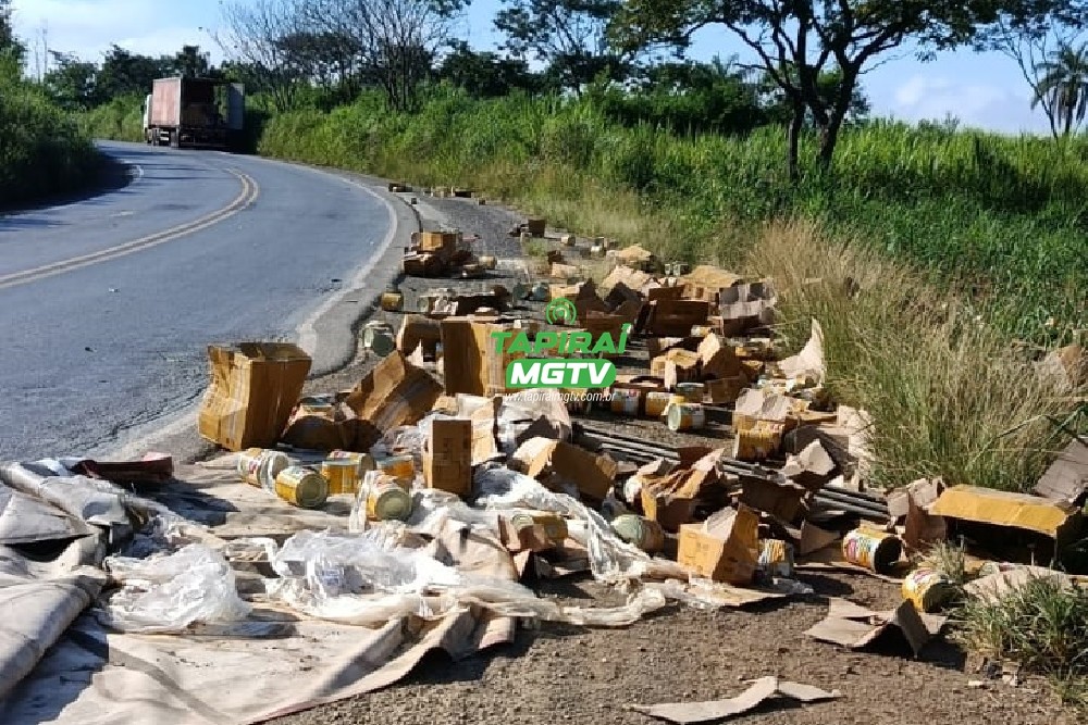 Carga de latas em conserva cai de caminhão em trecho da BR-354, em Córrego Danta