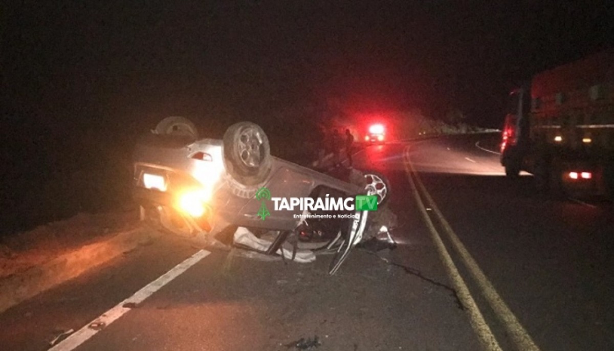 Carro com dois ocupantes capota na BR-354 em Córrego Danta