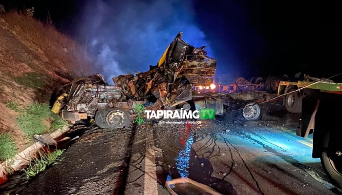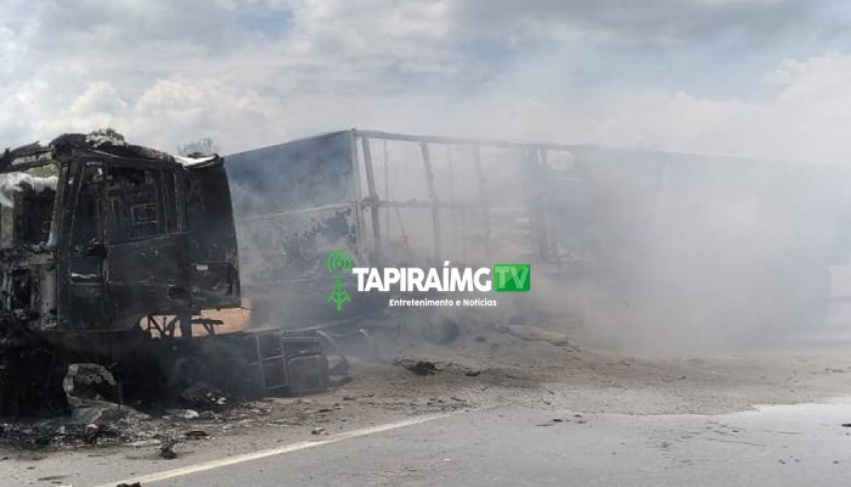 Motorista morre carbonizado após carreta tombar e pegar fogo na BR-354 em Córrego Danta