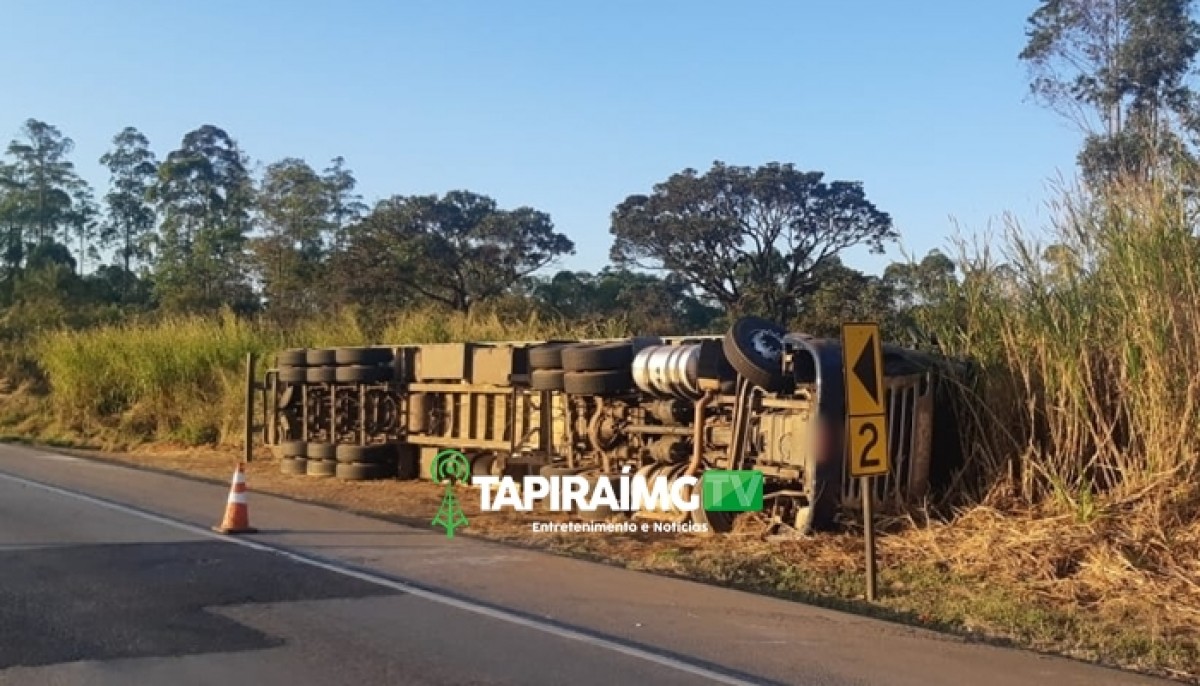 Carreta carregada de batata frita tomba e tem parte da carga saqueada na BR-262 em Córrego Danta