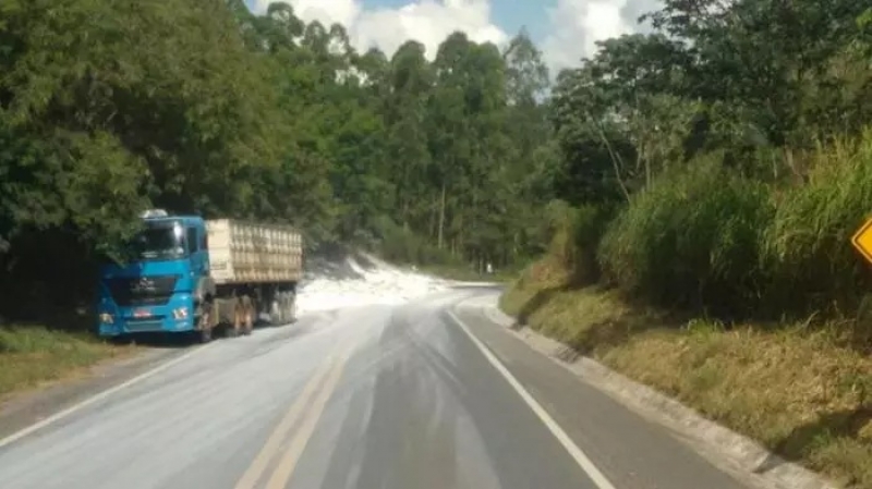 Acidente deixa carga espalhada pela pista na BR-354 em Córrego Danta