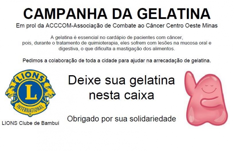 Lions Clube Bambuí promove campanha para arrecadar Gelatina em prol da ACCCOM