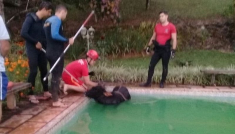 Vaca é resgatada após cair em piscina na zona rural de Itaúna