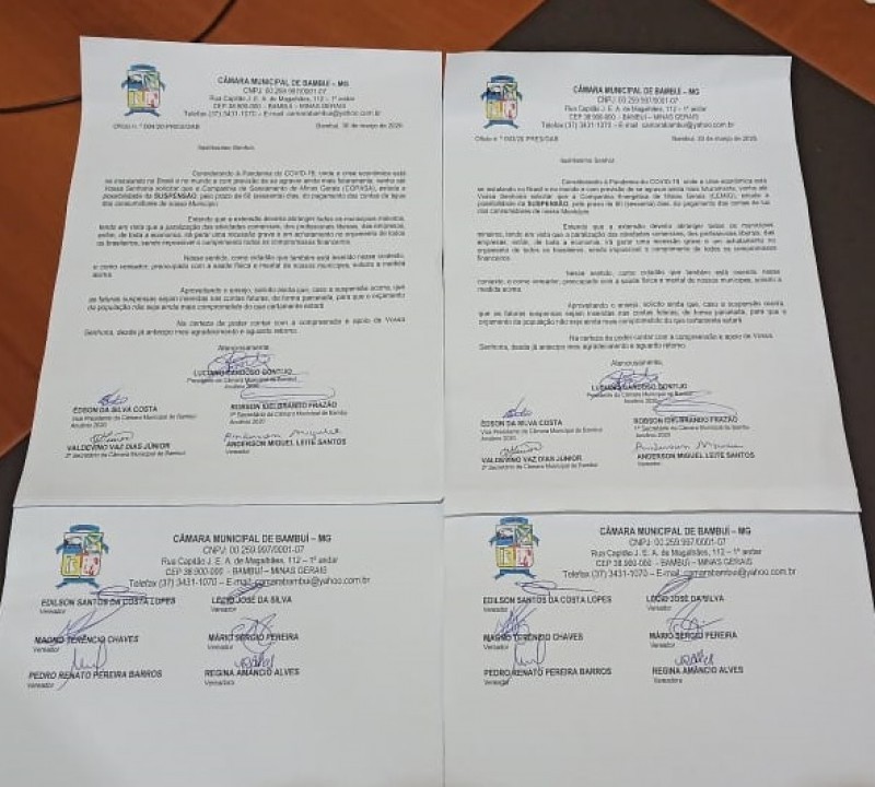 Vereadores solicitam que Copasa e Cemig suspendam cobranças por 60 dias em Bambuí