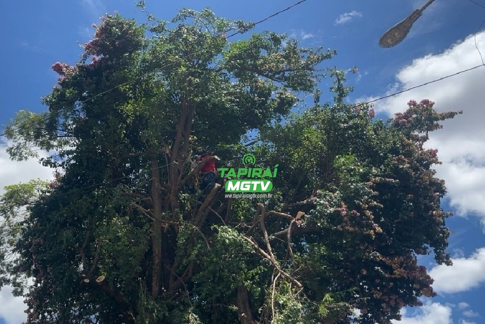 Corpo de Bombeiros apoia Prefeitura de Bambuí em corte de árvore com risco de queda
