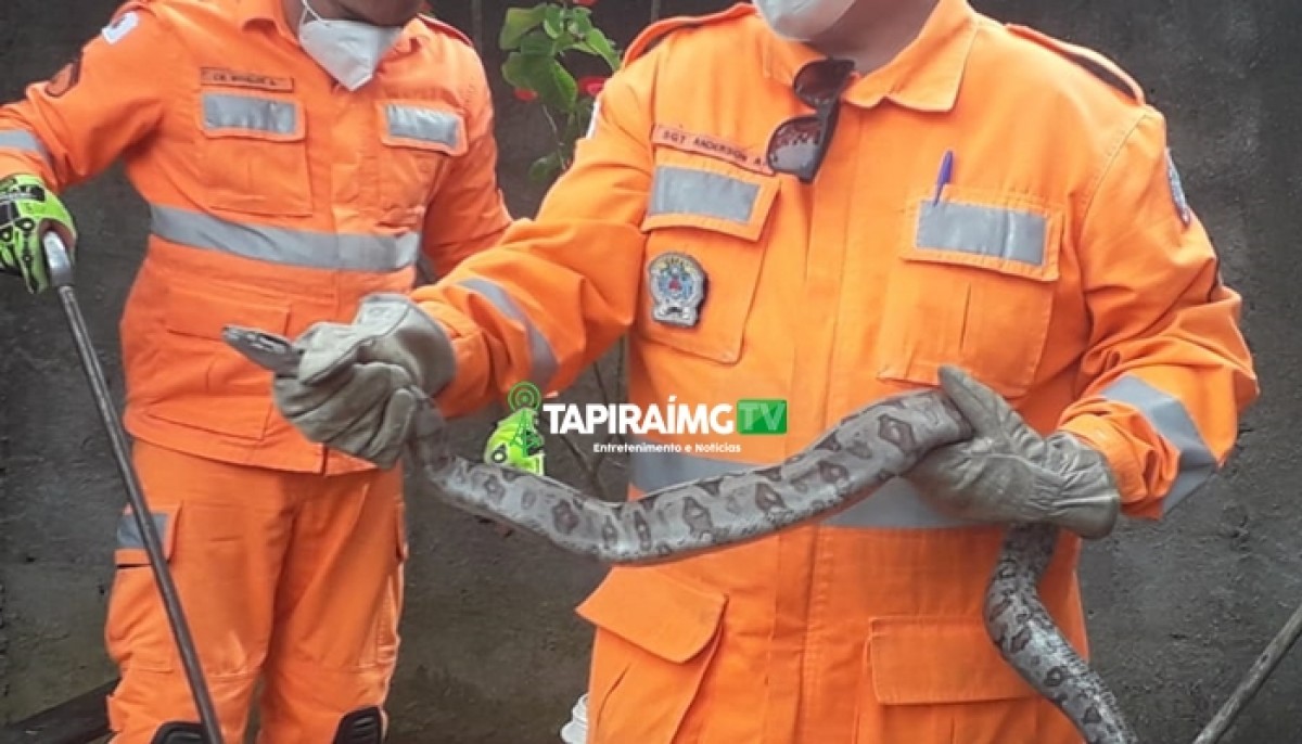 Bombeiros capturam jiboia em quintal de casa em Furnastur