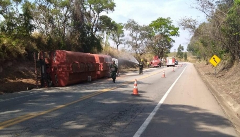 Motorista fica ferido após carreta bater em barranco e tombar na BR-262 em Ibiá