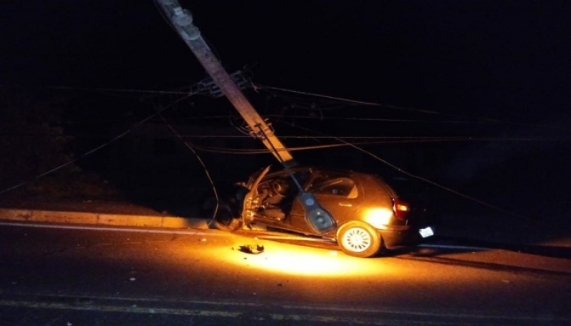 Homem com sinais de embriaguez perde o controle do veículo e bate em poste