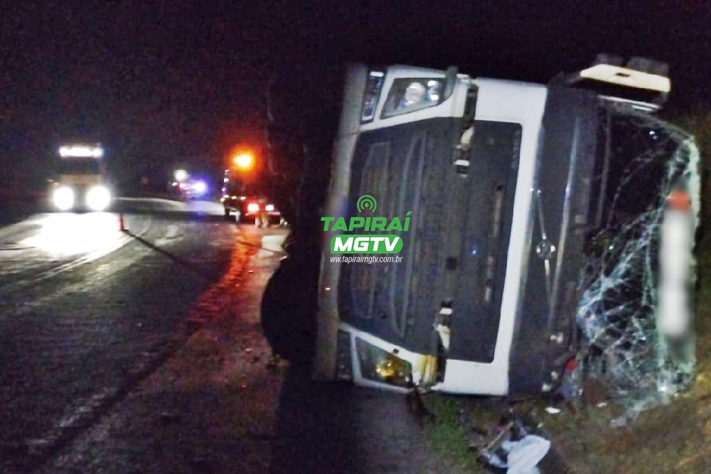 Vídeo: Homem fica ferido após carreta tombar na BR-262 em Córrego Danta