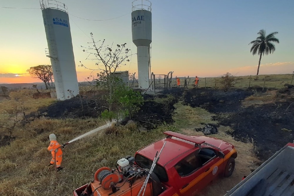 Incêndio atinge vegetação e danifica tubulações de reservatório em Formiga