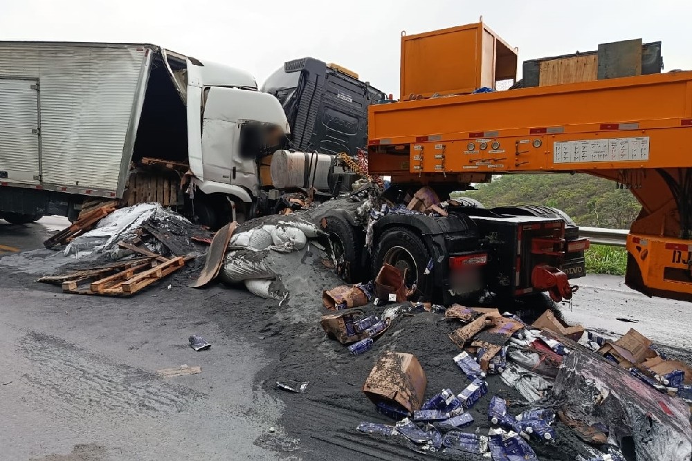 Vídeo: Colisão entre carreta e caminhão deixa uma vítima fatal e trânsito interditado na BR-354, em Formiga