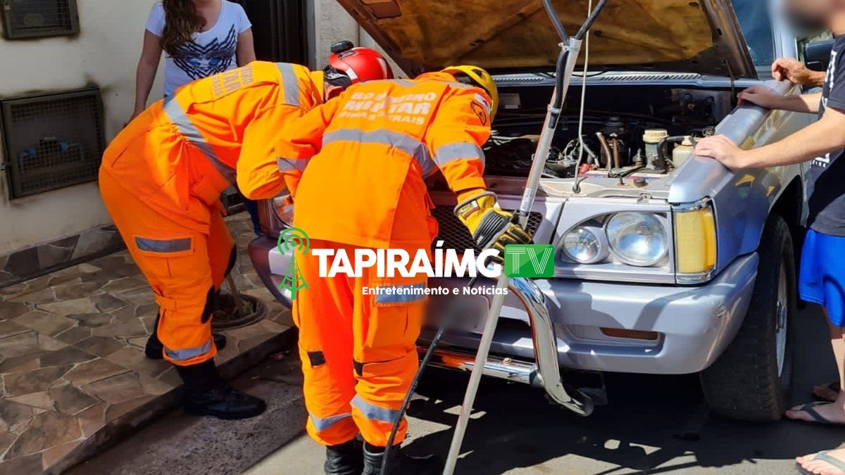 Gato é resgatado após ficar preso em motor de caminhonete, em Campos Altos