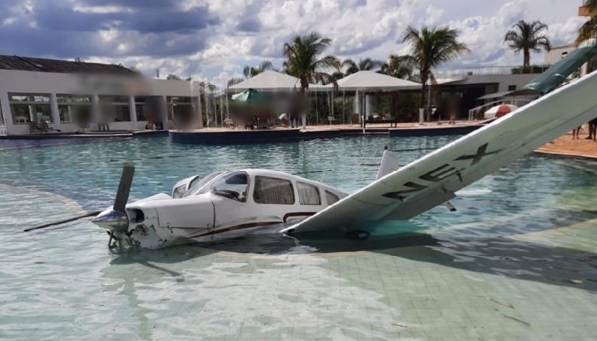 Avião cai em piscina de hotel às margens do Lago de Furnas em Formiga