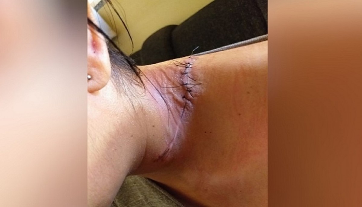 Mulher quase morre ao ter pescoço cortado por linha de cerol