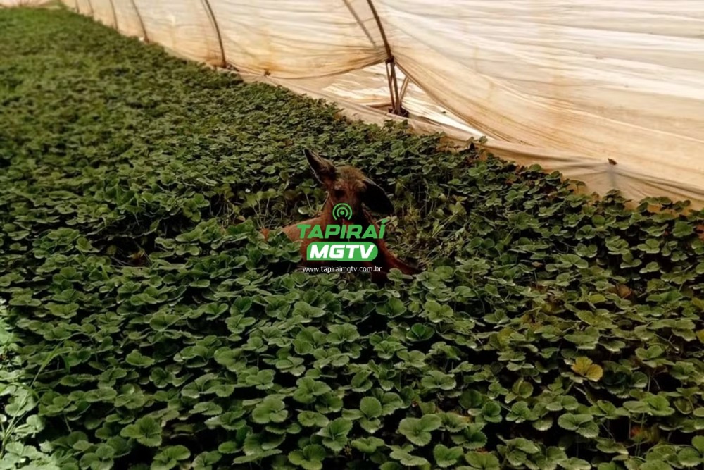 Lobo-guará é resgatado com corte na cabeça e debilitado em plantação de morango no interior de MG