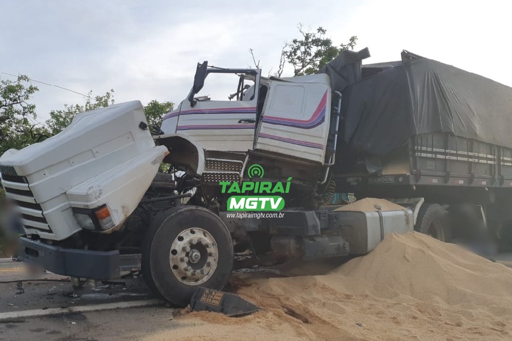 Vídeo: Homem fica ferido após acidente envolvendo três carretas na BR-262, em Luz