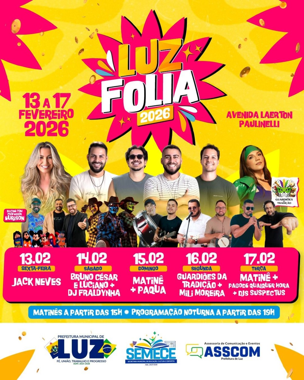 Prefeitura de Luz divulga atrações do Luz Folia 2026; confira a programação